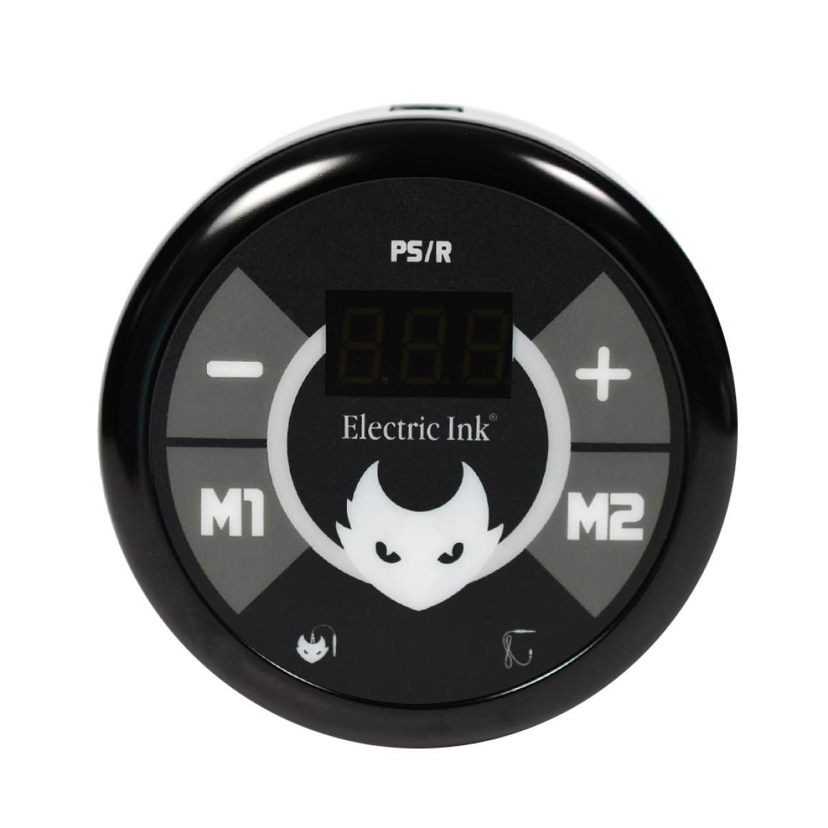 A Fonte Ps/Round é ideal para alimentação de máquinas de bobinas e/ou rotativas Electric Ink, visando confiabilidade, qualidade e segurança. A fonte conta com a parte inferior magnética para fixação em superfícies de ferro. O artista tem a opção de acompanhar a frequência que sua máquina trabalha em Volts ou PPS (Pulsos por segundo), além de contar com drivers de todas as máquinas rotativas Electric Ink, máquinas de bobina e rotativa livre, que possuem configurações exclusivas para uma melhor performance dos equipamentos. A fonte possui as funções DotWork e Rastelado para os artistas do pontilhismo que usam máquinas de bobina e esta disponível em mais de 20 cores para personalização.