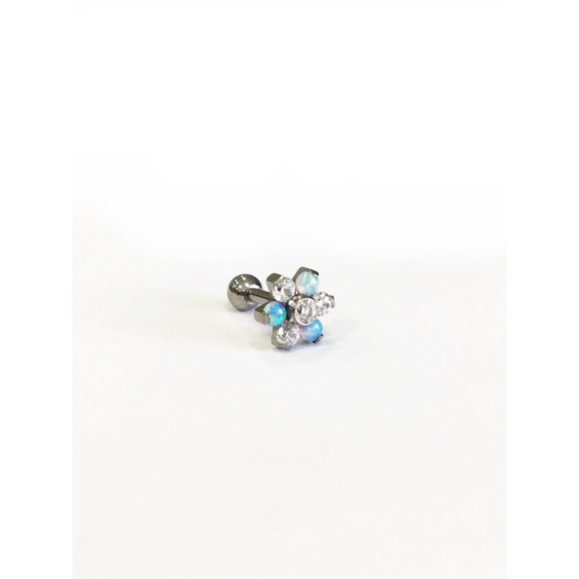 Piercing Microbell Reto Opala Azul em Titânio 6mm