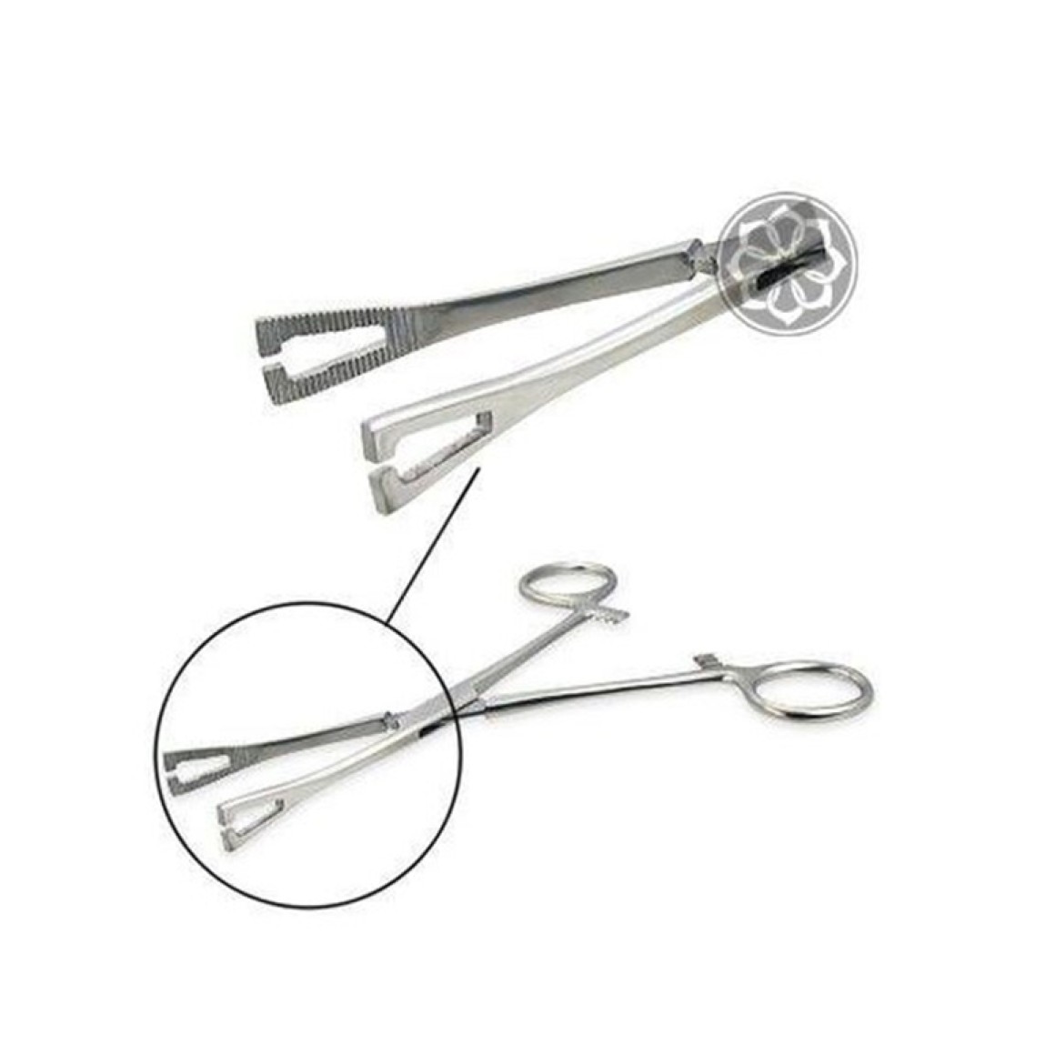Serve para auxiliar o profissional de body piercing na hora de segurar a jóia que será colocada no cliente. Possui trava de abertura para facilitar a aplicação e dar segurança ao profissional.